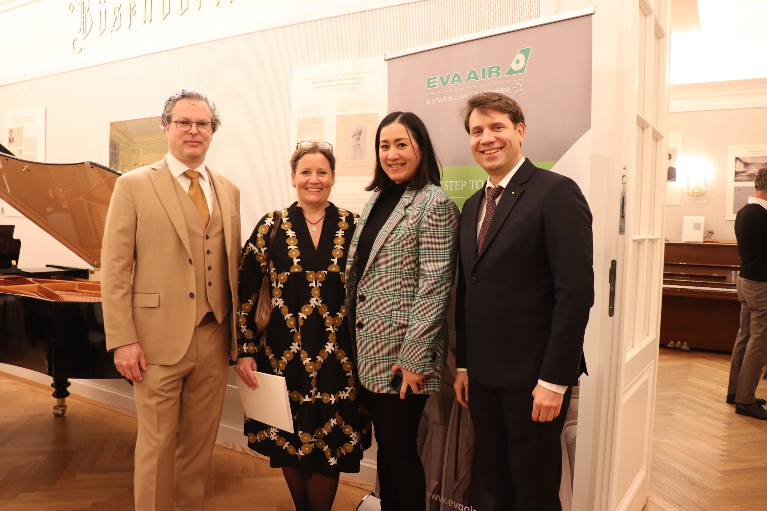 Seit fast 35 Jahren verbindet die private taiwanesische Airline EVA Air Millionen von Reisenden mit Wien, einer Stadt, die für ihr reiches musikalisches Erbe bekannt ist. Inspiriert von den kulturellen Traditionen Wiens luden Edward Ho, EVA Air General Manager Austria und CEE und sein Team zum ersten EVA Air Hauskonzert. Dieses musikalische Treffen mit dem Motto „Auf Flügeln des Gesanges“ führte langjährige Kooperationspartner und -Partnerinnen sowie Musikliebhaber und -liebhaberinnen im eleganten Rahmen des Bösendorfer Salons zusammen. Neben der thailändischen Botschafterin Ms. Pattarat Hontong und Repräsentantinnen der Tourism Authority Thailand Prag folgten u.a. Nicola und Christoph Rath von „Meisterstrasse“, Arno Pajek, Präsident des Österreichischen Schwimmverbandes (OSV) und OSV-Generalsekretärin Julia Powischer, Hermann Rauter, Gründer des „House of Strauss“ und Alfred Goebhart von Kuoni Creative der Einladung von EVA Air.